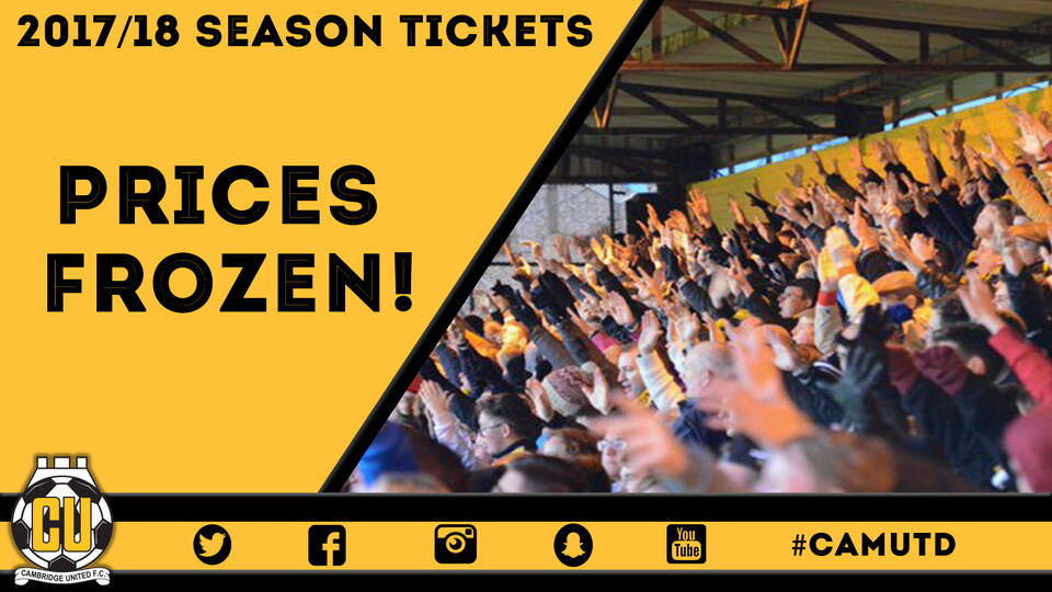 Cambridge United season tickets for the 2017/18 season are on sale now online here, in-store or by calling 01223 566 500!