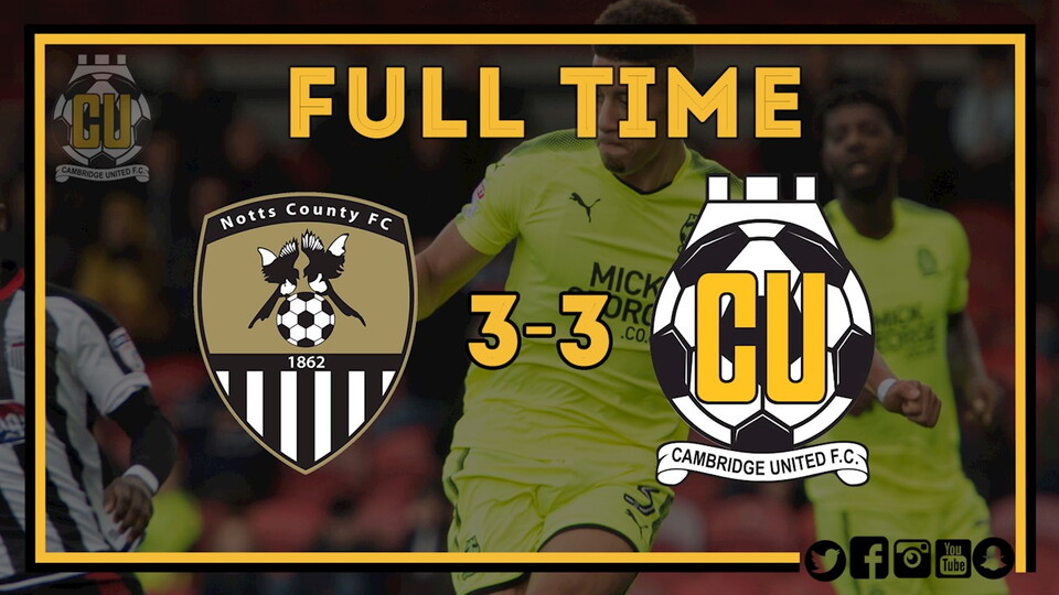 Cambridge United suffered a late fight back against League Two high flyers Notts County, who clawed back a three goal deficit in a thrilling 3-3 draw at Meadow Lane.