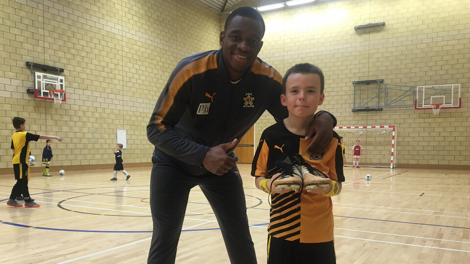 Watch the moment young William Labourne received his prize from Uche Ikpeazu, as the Cambridge United striker handed over a pair of his signed match-worn boots at Swavesey Soccer School.