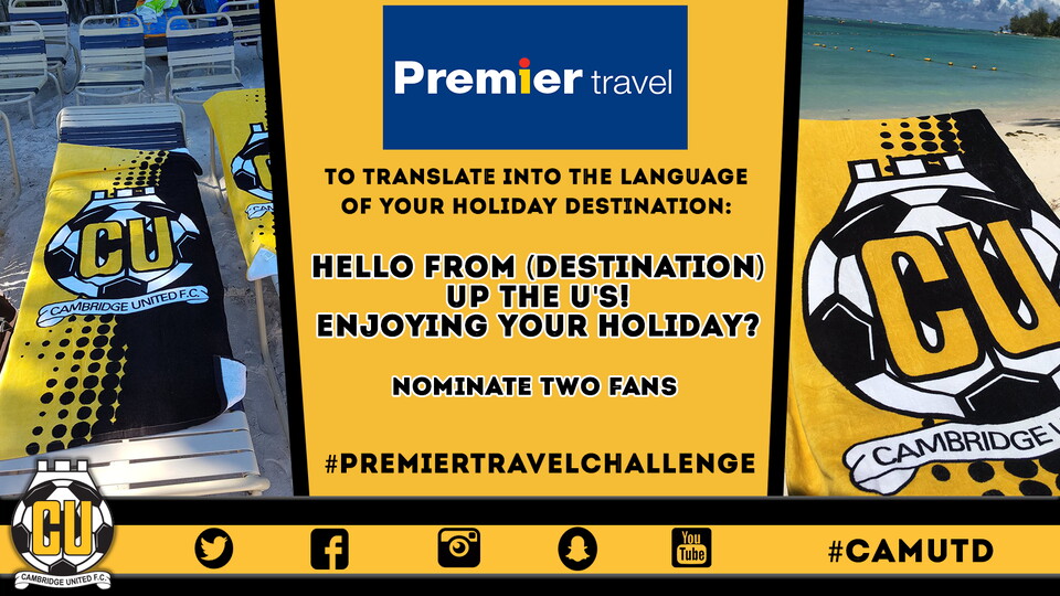Cambridge United is tasking the Amber Army and the first team squad to take on the Premier Travel Challenge whilst on their travels this summer, with the chance to win the new 2017/18 home shirt signed by the U’s!