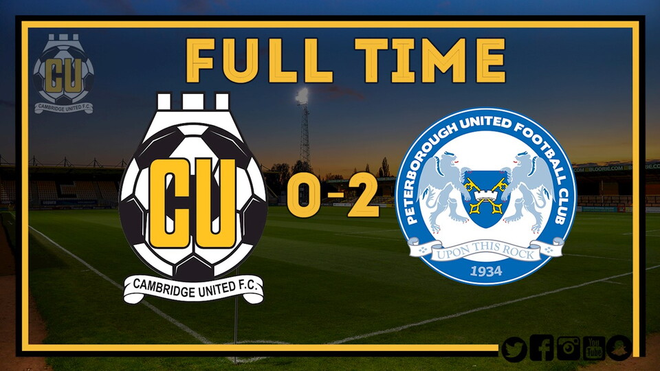 Cambridge United bowed out of the Checkatrade Trophy with a 0-2 defeat, in the first competitive derby against local rivals Peterborough United for 16 years.
