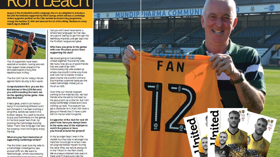 As part of the #UnitedSince1912 campaign, the U’s are delighted to introduce the 12th Fan initiative supported by Mick George, which will see a Cambridge United supporter profiled on the Club website and in the match day programme, occupy the number 12 shirt and lead out the U’s at the Abbey Stadium on every match day in 2018/19!