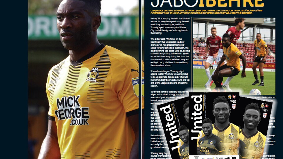 U’s striker Jabo Ibehre speaks to tomorrow’s match day programme about remaining positive and continuing the hard work - Read a preview of the Cheltenham Town programme here!