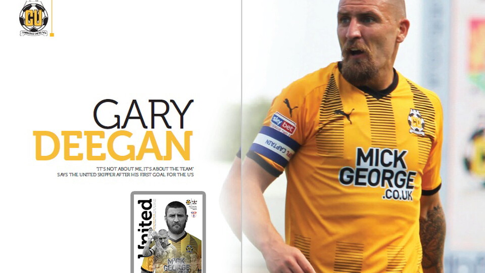 Cambridge United captain Gary Deegan has been speaking to the match day programme ahead of tonight’s clash with Exeter City at the Abbey – Read a preview here.
