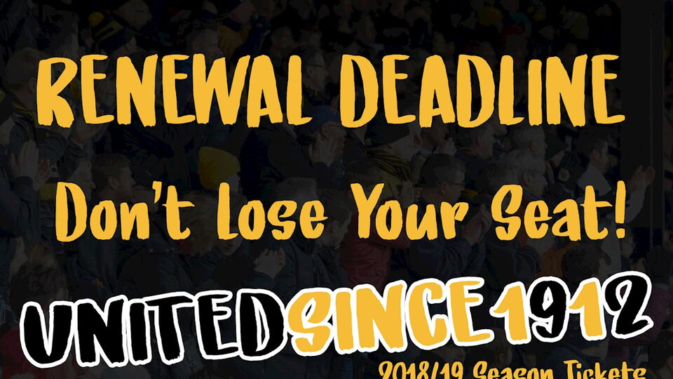 Cambridge United would like to remind existing season ticket holders, that the renewal deadline to secure your current seat at the Abbey Stadium for 2018/19, will close at 5pm on Friday (11th May).