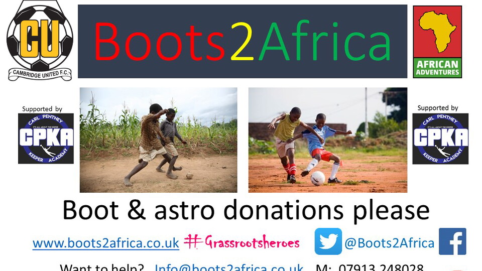If your Grassroots club would like to support Boots2Africa in the coming season and beyond, come and meet the Boots2Africa team before the game at the Fan Club Tent.