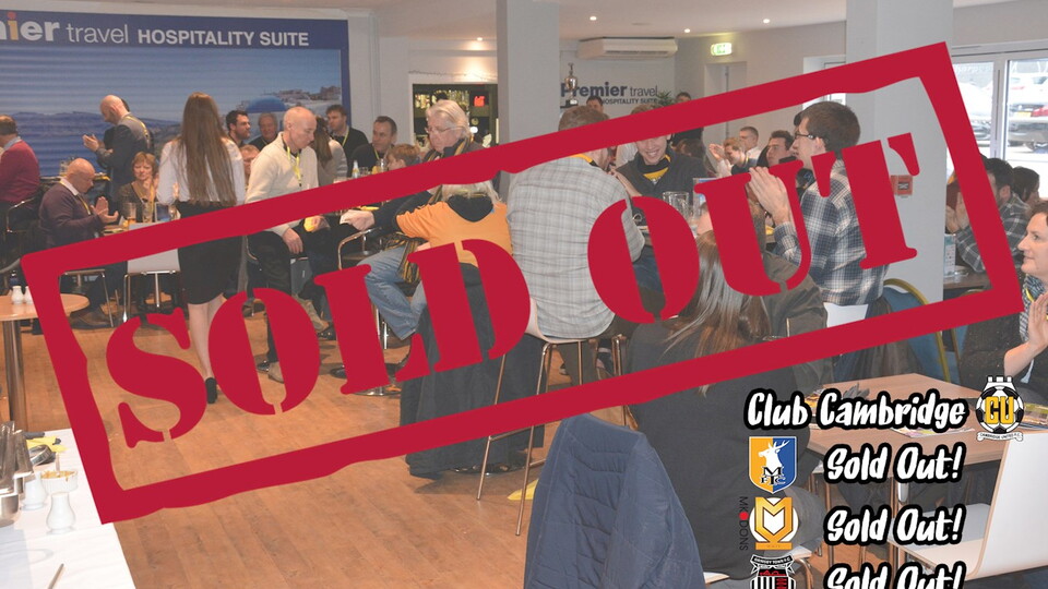 Club Cambridge is in high demand beyond this weekend too with the upcoming matches against MK Dons (13/10) and Grimsby Town (03/11) already sold out, and places for the remaining home fixtures in October extremely limited.