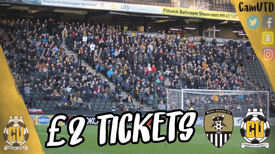 The match at Meadow Lane is an all ticket fixture, so supporters must purchase in advance of match day by heading to cufcdirect.com, in-store or by calling 01223 566 500.