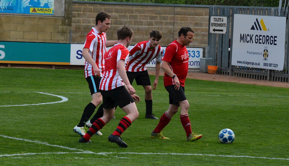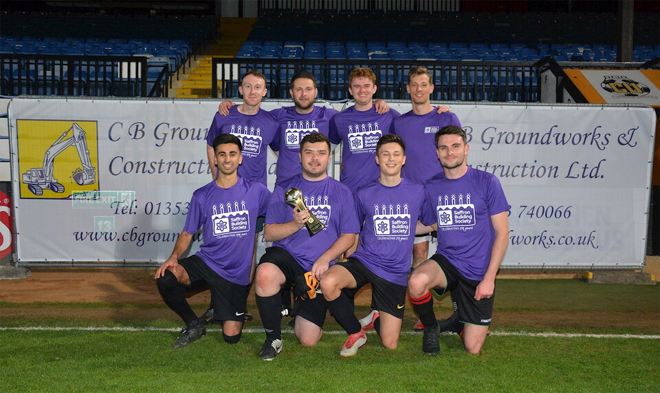 Kershaw and Saffron Building Society tasted success across two nights of corporate six-a-side at the Abbey Stadium this week, setting up an exciting grand final of the CB Groundworks Cup.