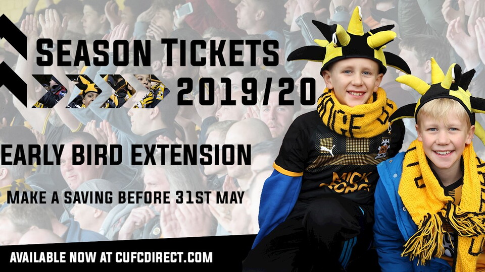 Following yesterday’s initial Early Bird deadline, Cambridge United are pleased to announce a second phase in which U’s fans can still secure their 2019/20 season at a reduced cost before the end of May.