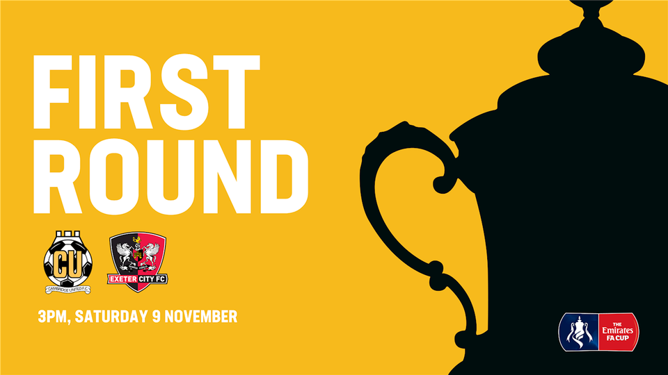 Cambridge United's opening Emirates FA Cup fixture of the 2019/20 is almost upon us with the U's welcoming Exeter City back to the Abbey this Saturday - Secure your tickets and hospitality places for the tie (K.O. 3:00pm).