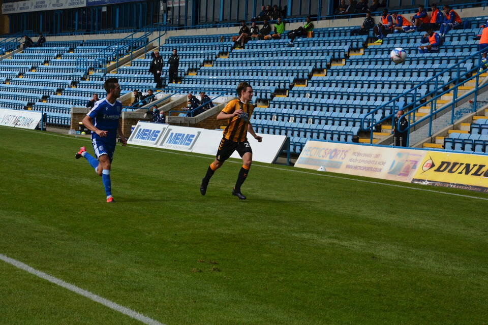 Kyle Knoyle hurtled forward brilliantly on 66 minutes to create a chance for himself inside the Gillingham 18 yard box, but couldn’t quite keep his shot inside the far post from a narrow angle.