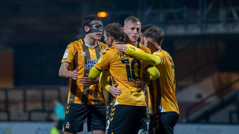Cambridge United: Burton, Knoyle, Cundy, Darling, Dunk, Davies, Taylor (May, 85), Digby, Hannant (Iredale, 90), El Mizouni, Mullin (Knibbs, 79)