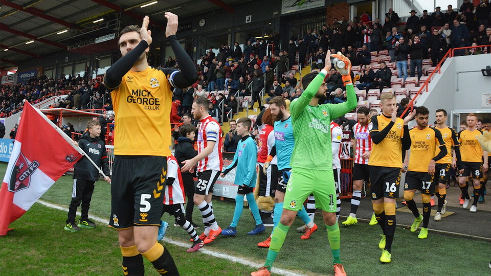 The latter had strong shouts for a penalty waved away by referee James Oldham inside the opening five minutes, when the U’s midfielder tumbled to the floor in the Exeter 18 yard box and was adamant the challenge by Jayden Richardson was a foul.
