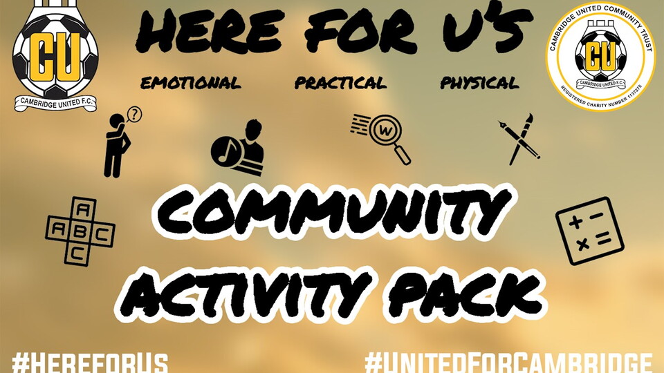 Cambridge United Community Trust launch their first ‘Here For U’s’ Community Activity Pack, containing plenty of exciting quizzes to keep you occupied during lockdown and isolation.