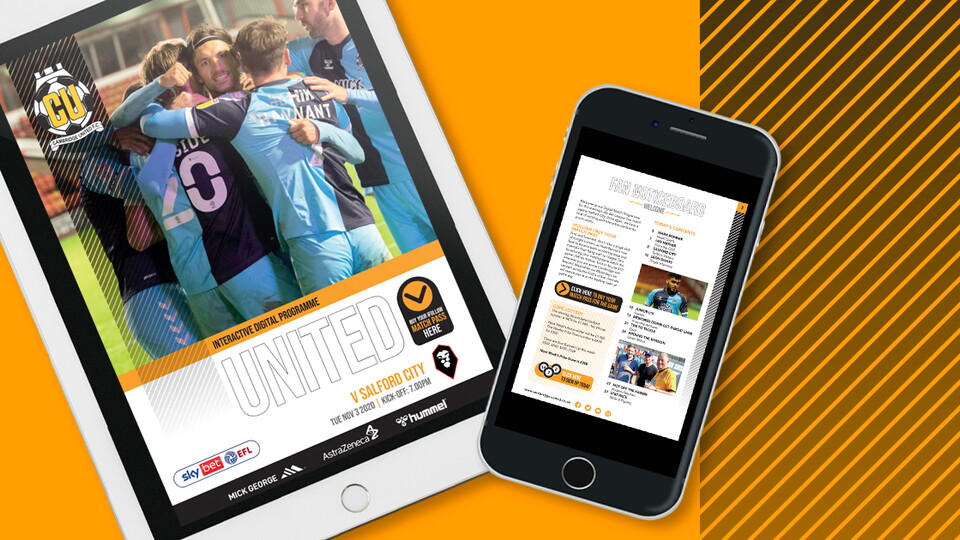 Supporters can now view and download this evening’s official Digital Match Programme for the Sky Bet League Two fixture against Salford City.