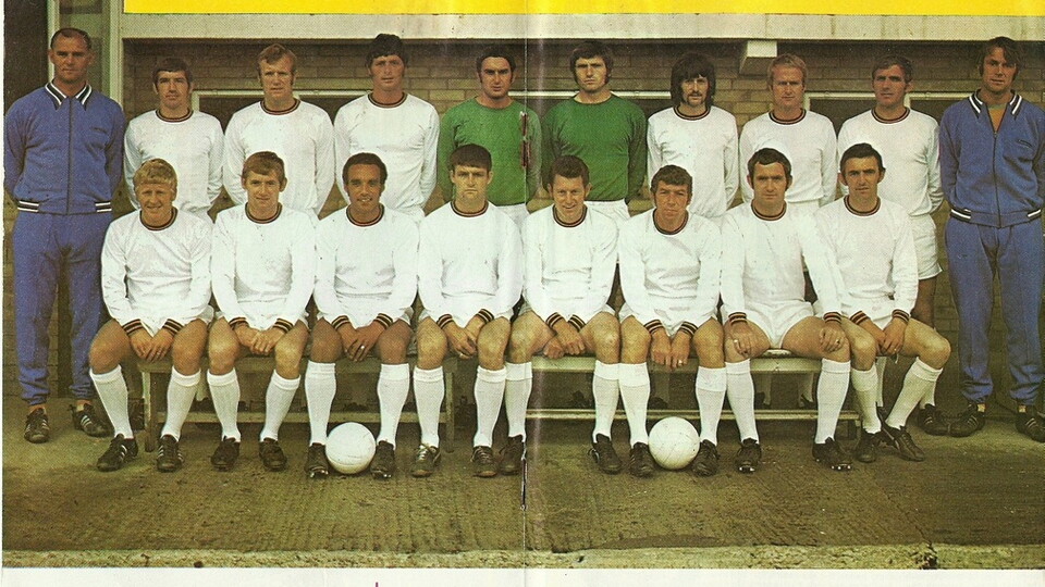 To mark their inaugural Football League campaign, Leivers’ United swapped the traditional amber and black with an all-white home strip, after the team had adopted all-white home colours in February 1970, following a string of good results. United continued with these colours before reverting to black and amber for the 1972/73 season onwards.