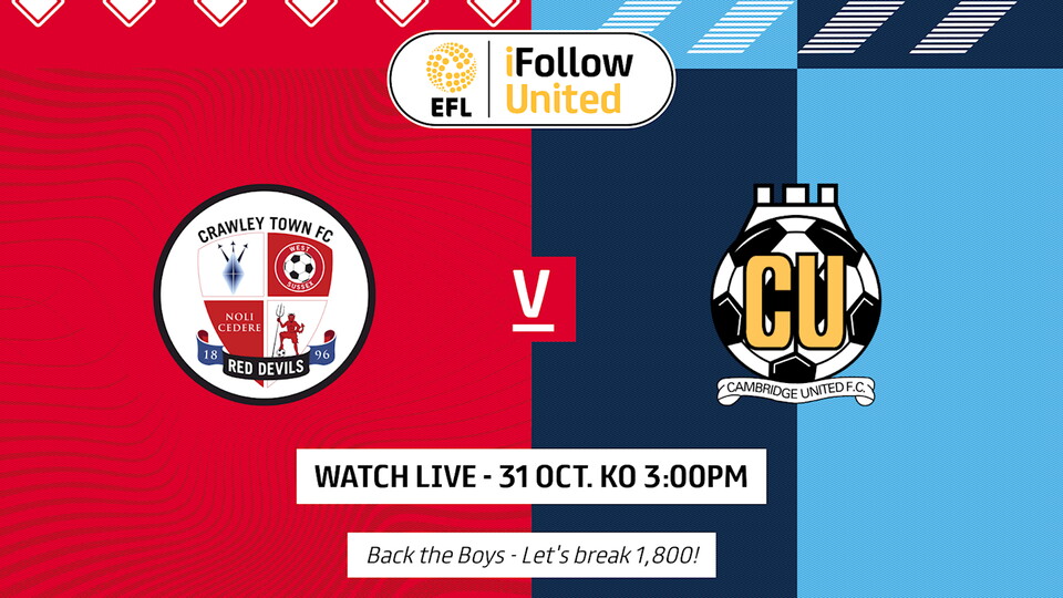 The U's are back on the road at Crawley Town Saturday and need your support on iFollow as they look for their sixth straight game unbeaten in Sky Bet League Two!