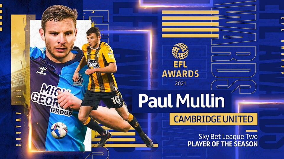 Paul Mullin is the first Cambridge United player to win an EFL Award since the event's inception in 2006. The striker beat out competition in the form of U's teammate Wes Hoolahan and Forest Green Rovers' Jamille Matt.