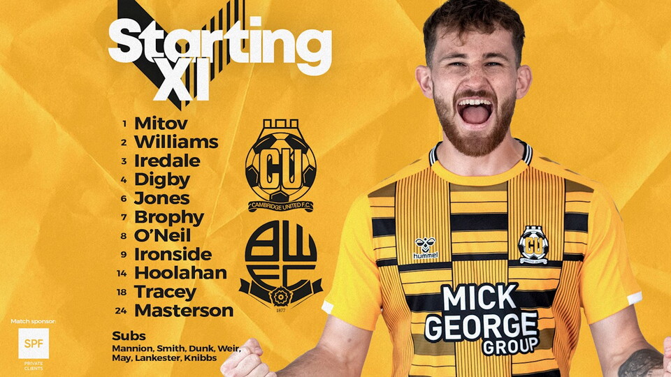 Mark Bonner names five changes from midweek ahead of United's clash with Bolton Wanderers this afternoon...