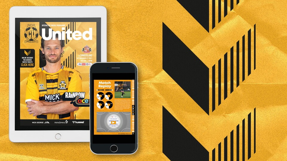 U's fans can now download the Cambridge Utd vs Sunderland Digital Matchday Programme...