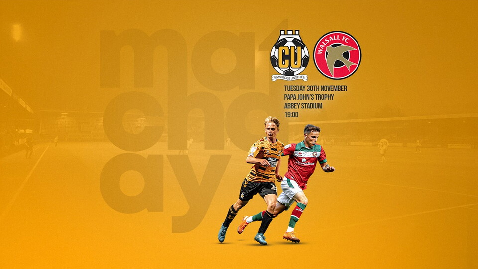 Having topped Group H (Southern), Mark Bonner's men face off against Walsall in the first knockout stage of the Papa John's Trophy at the Abbey Stadium.