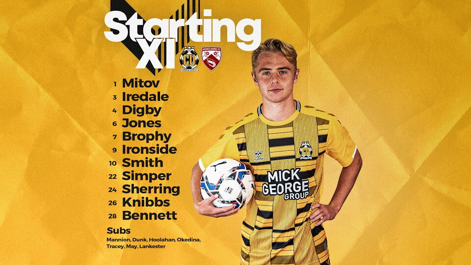 Starting XI: Mitov, Iredale, Digby, Jones, Brophy, Ironside, Smith, Simper, Sherring, Knibbs, Bennett
