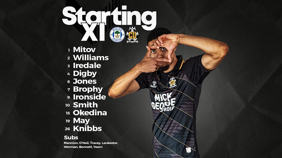 Starting XI: Mitov, Williams, Iredale, Digby, Jones, Brophy, Ironside, Smith, Okedina, May, Knibbs
