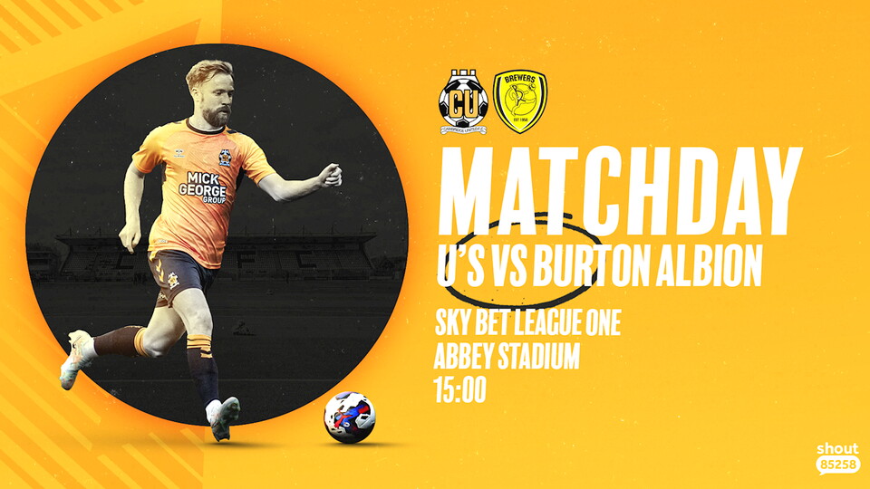 It's Burton Albion in a 3pm Sky Bet League One kick-off and tickets are available all around the ground. Get yours online, over the phone by calling 01223 566500 (option 1) or by purchasing from the Abbey Stadium Ticket Office.