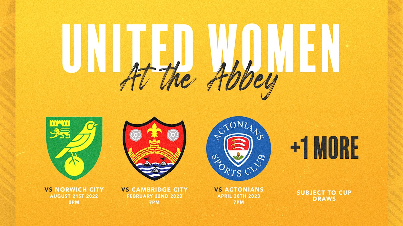 United's Women have four fixtures at the Abbey this season, with Cambridge City and Actonians two of the other three visitors.