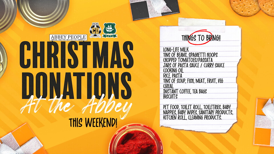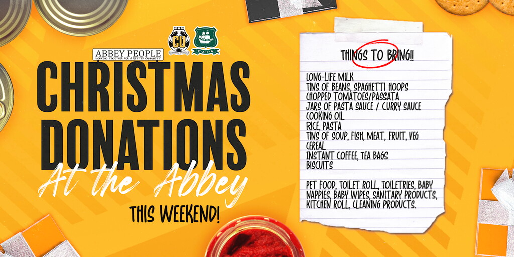 Cambridge United is supporting local charity, Abbey People, this Saturday, inviting supporters to donate food & toiletries ahead of kick-off…
