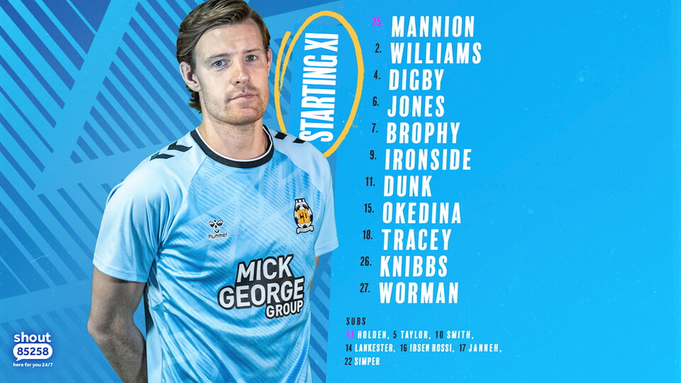 Starting XI: Mannion (GK), Williams, Digby (C), Jones, Brophy, Ironside, Dunk, Okedina, Tracey, Knibbs, Worman