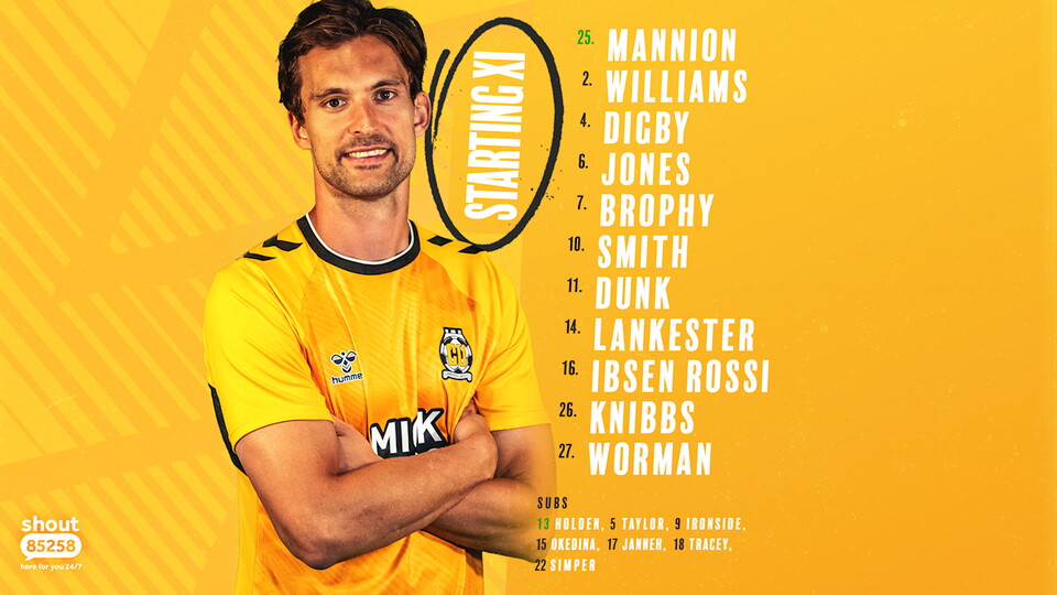 Starting XI: Mannion (GK), Williams, Digby (C), Jones, Brophy, Smith, Dunk, Lankester, Ibsen Rossi, Knibbs, Worman