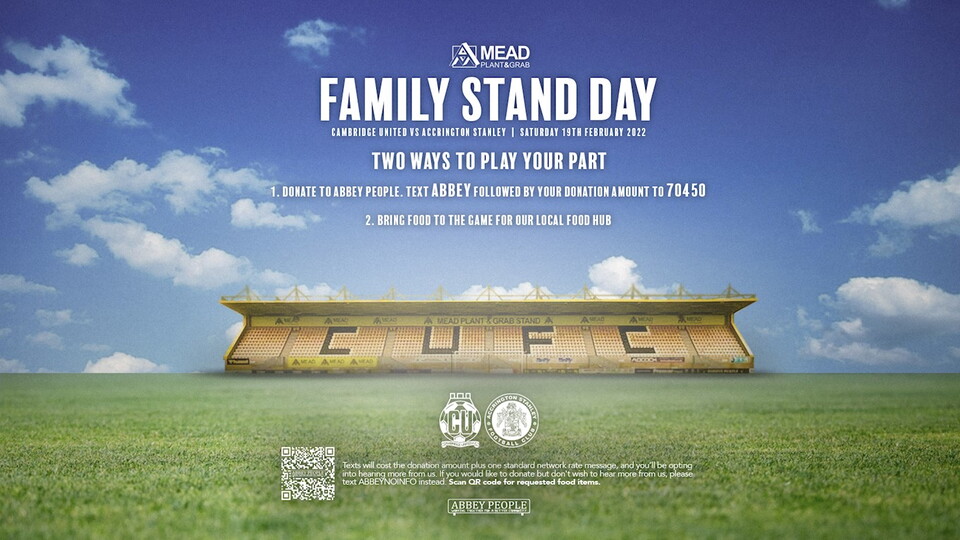 "Abbey People are a vital resource for many in the community by providing households in extreme need with additional hot meals, access to sanitary supplies, clothing and school materials for children. I would strongly encourage Cambridge United fans to bring food because it really will make a huge difference."