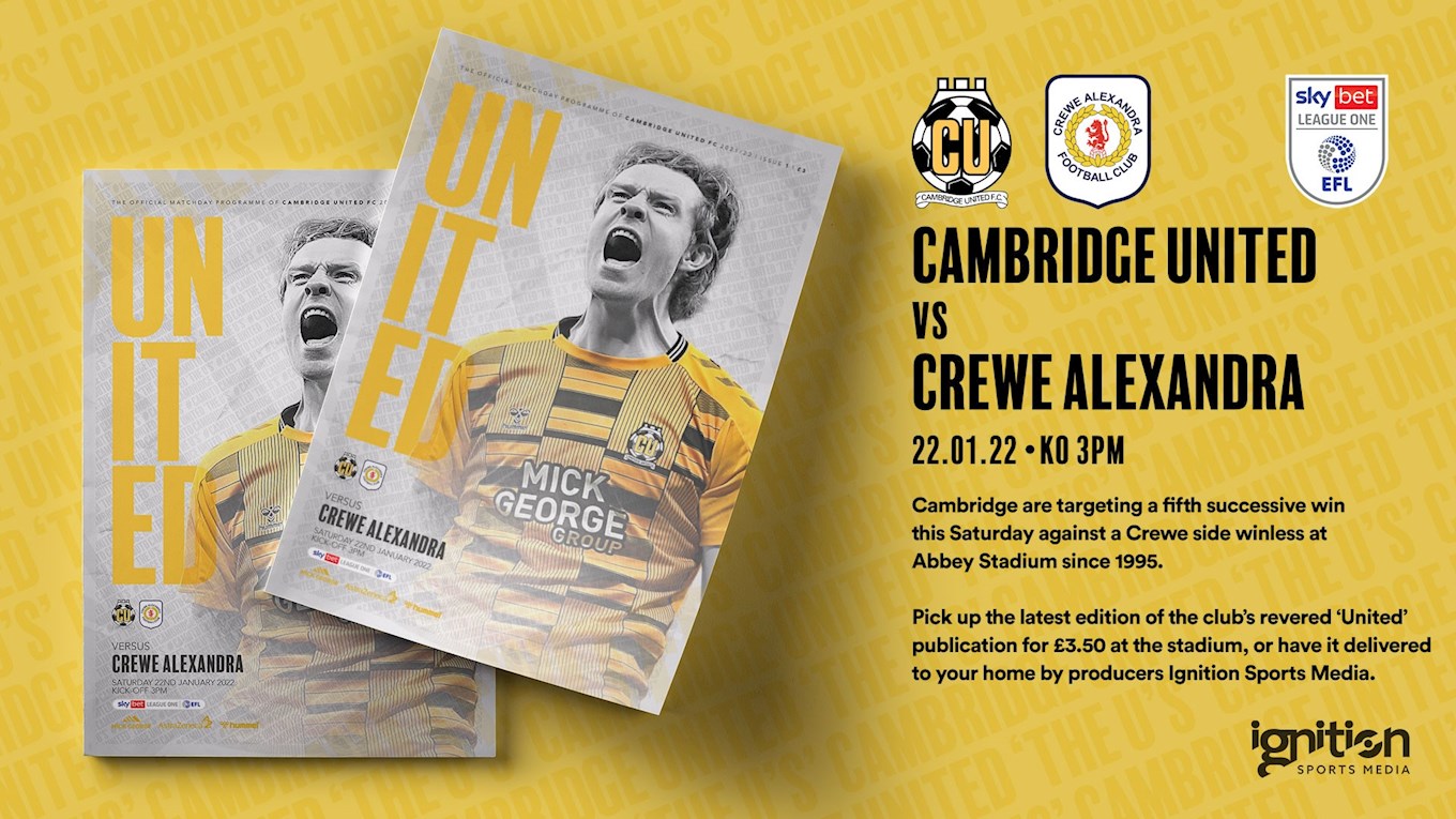 Cambridge United looks forward to welcoming the Crewe Alexandra travelling supporters to the Abbey Stadium. For Away Fan Information including how to find the ground, catering options and travel information, please click here.