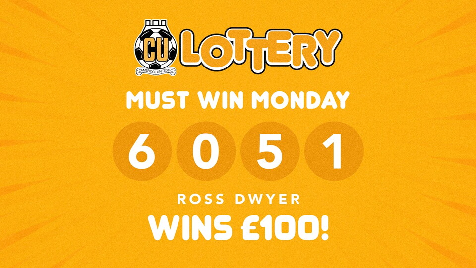 Sign up to the CUFC Lottery from just £2 a week and be entered into both draws whilst helping improving facilities and the fan experience at the Abbey Stadium.