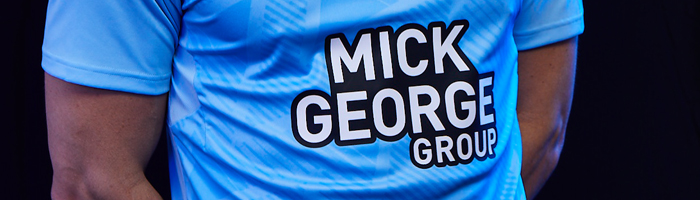The Mick George logo is proudly displayed on the front of the shirt for the 10th straight season, whilst the The Hill Group feature again as the back-of-shirt sponsor.