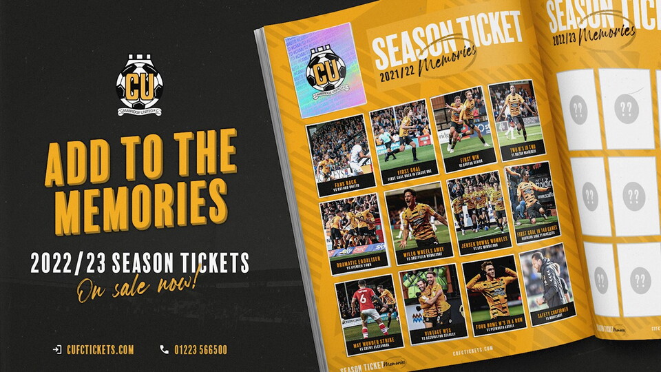 - For Corporate Season Tickets, please email commercial@cambridge-united.co.uk
