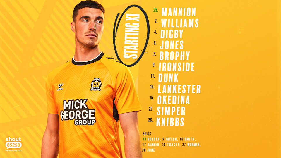 Starting XI: Mannion, Williams, Digby, Jones, Brophy, Ironside, Dunk, Lankester, Okedina, Simper, Knibbs