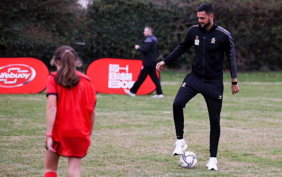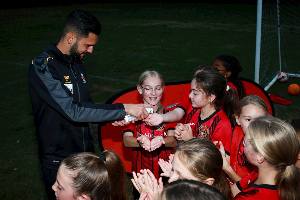 Dimi then met some of the girls within the Club ranging from the U12’s squad to U18’s, before gathering all the teams to have their photographs taken. Next up an autograph session, where Dimi signed everything from a Soaper Heroes sticker to one of the girl’s socks.