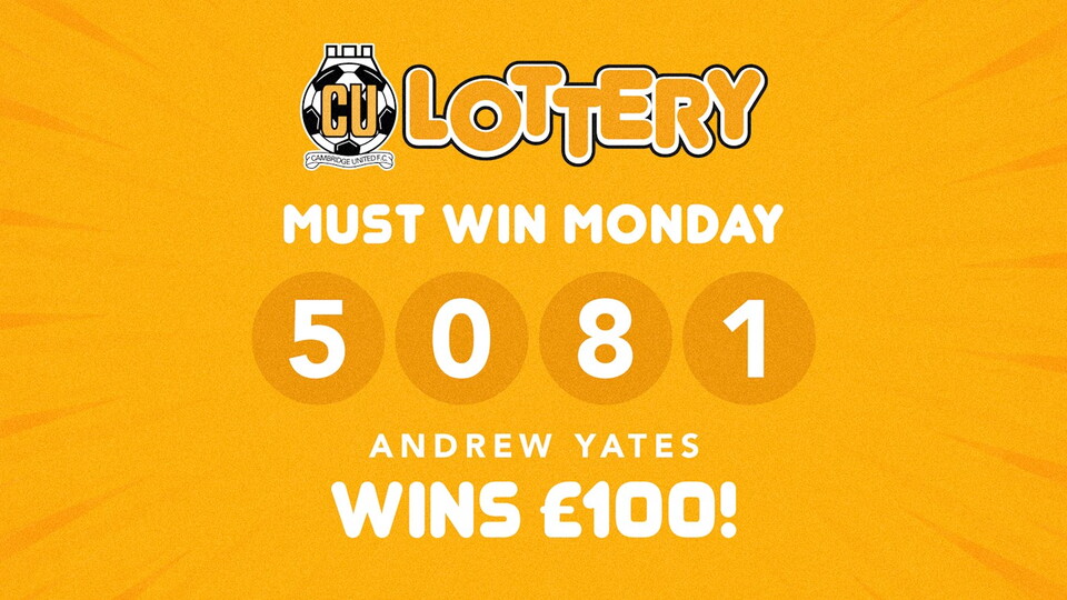 Sign up to the CUFC Lottery from just £2 a week and be entered into both draws whilst helping improving facilities and the fan experience at the Abbey Stadium.