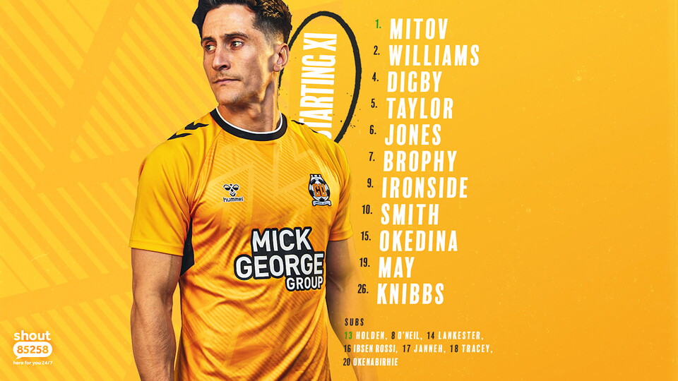 Starting XI: Mitov, Williams, Digby, Taylor, Jones, Brophy, Ironside, Smith, Okedina, May, Knibbs