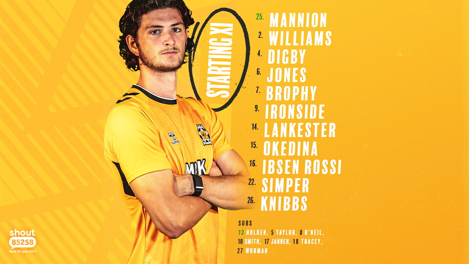 Starting XI: Mannion, Williams, Digby, Jones, Brophy, Ironside, Lankester, Okedina, Ibsen Rossi, Simper, Knibbs