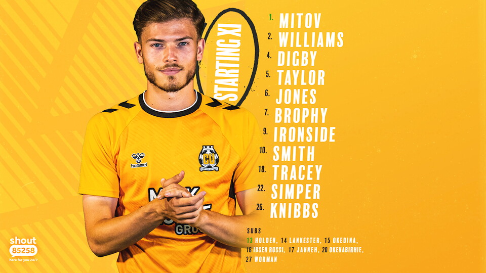 Starting XI: Mitov, Williams, Digby, Taylor, Jones, Brophy, Ironside, Smith, Tracey, Simper, Knibbs