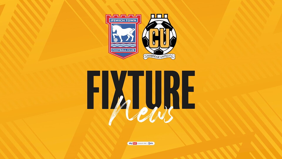 Cambridge United's postponed away match at Ipswich Town has been rescheduled and will now be played on Tuesday 4th October at 7:45pm...