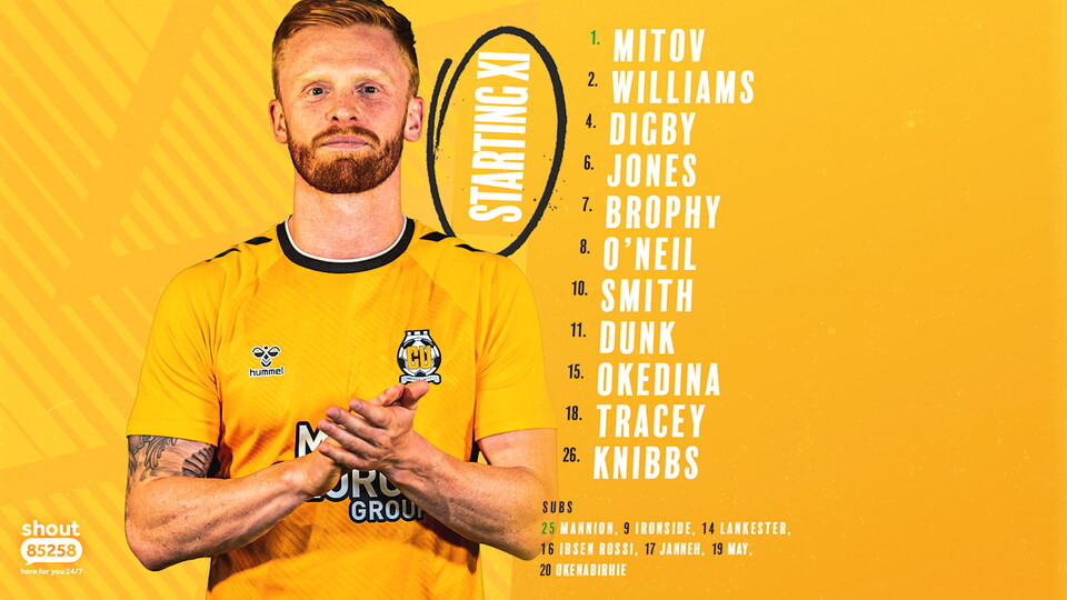 Joe Ironside and Adam May drop out of the starting XI, seeing James Brophy and Liam O'Neil come into the side - as the U's look to make it five straight League One wins on the bounce at the Abbey Stadium.