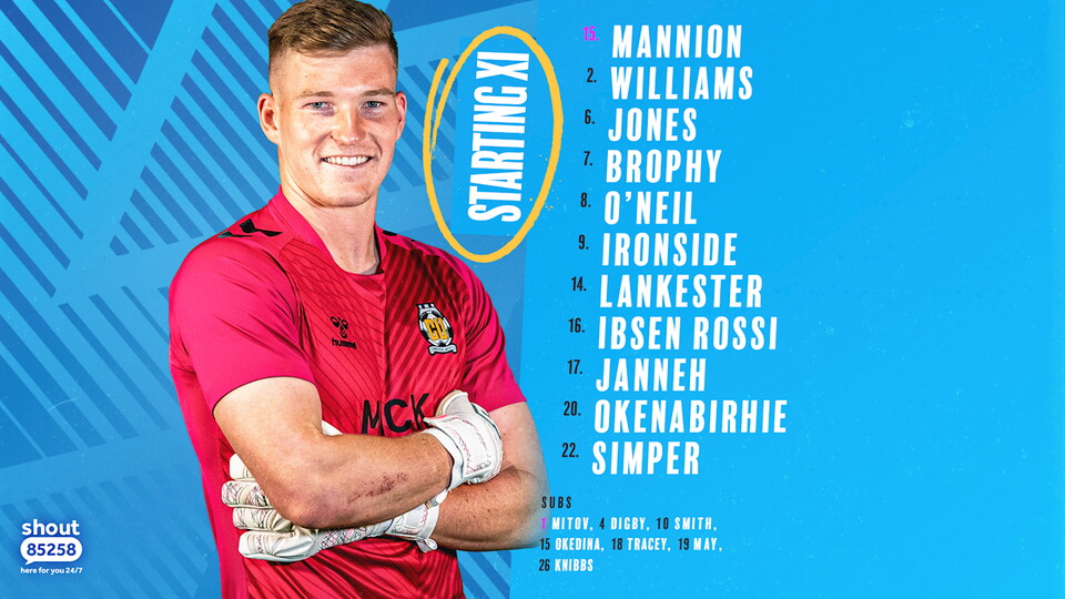 Starting XI: Mannion, Williams, Jones, Brophy, O'Neil, Ironside, Lankester, Ibsen Rossi, Janneh, Okenabirhie, Simper