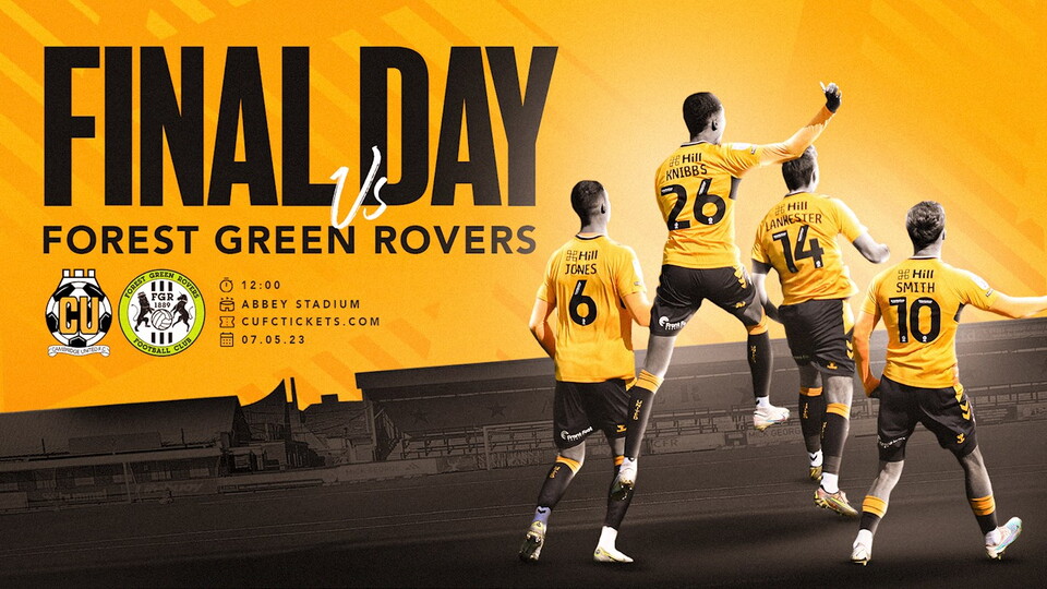 Secure your place online at cufctickets.com, over the phone by calling 01223 566500 (option 1) or by visiting the Abbey Stadium Ticket Office.