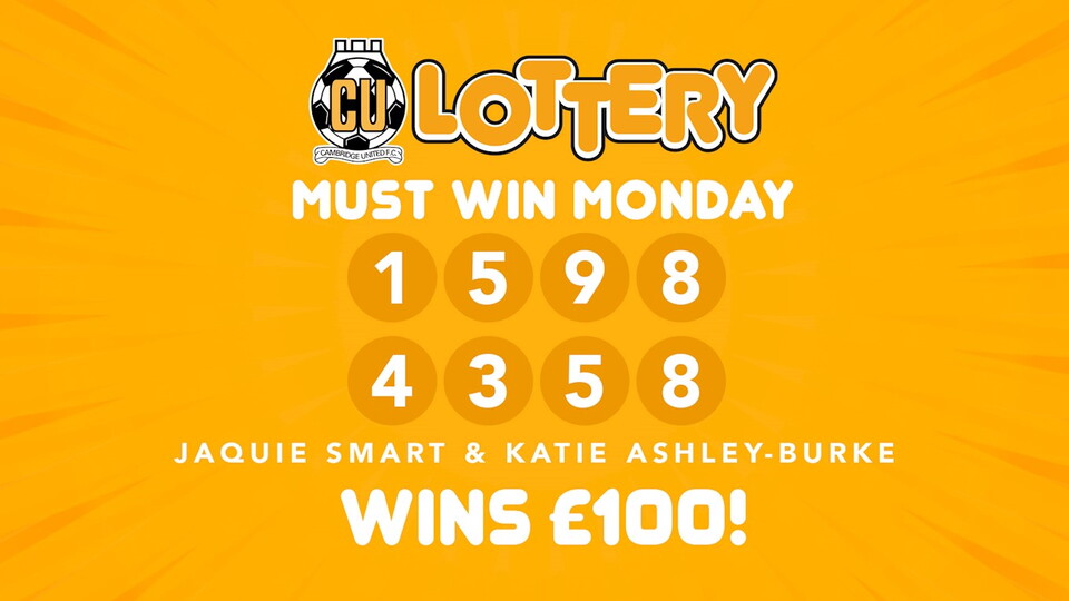 Sign up to the CUFC Lottery from just £2 a week and be entered into all three draws whilst helping improving facilities and the fan experience at the Abbey Stadium.