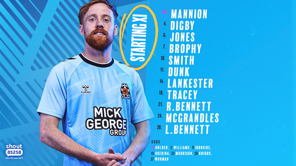 Starting XI: Mannion, Digby, Jones, Brophy, Smith, Dunk, Lankester, Tracey, R.Bennett, McGrandles, L.Bennett